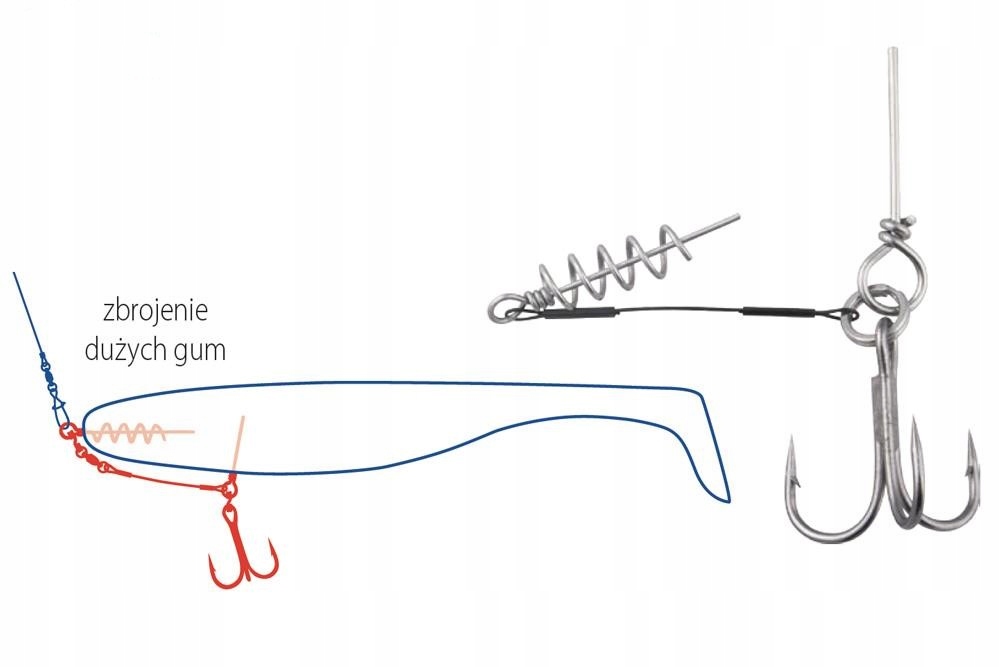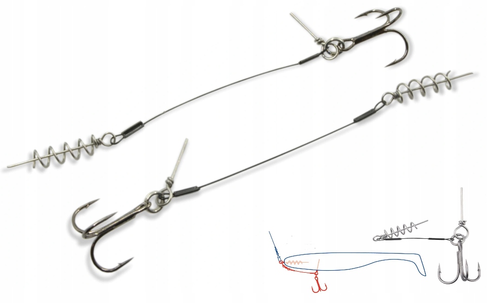 Dozbrojki połączone z korkociągiem (wkrętem), ułatwiającym precyzyjne zamontowanie do miękkiej przynęty. Cztery długości, wybrane do gum o wielkości od 15 do 25 cm i cztery wielkości kotwic DRAGON V-POINT, które zapewnią skuteczne zacięcie.