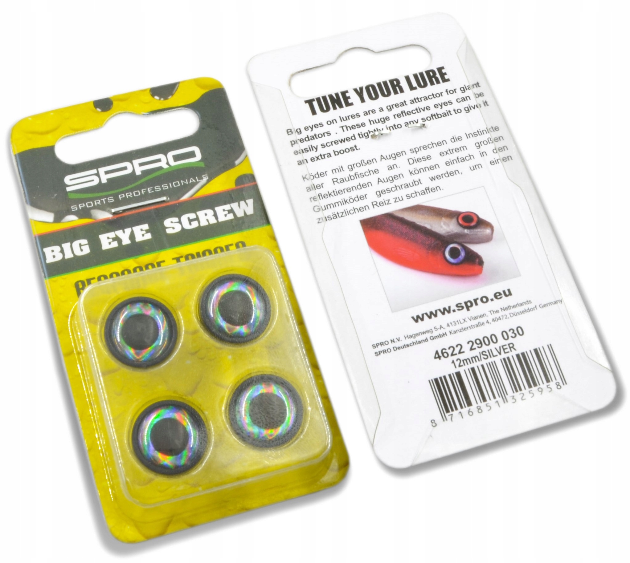Duże oczy, czyli coś, na co reagują wszystkie drapieżniki. Praktyczny gadżet, pozwalający nam dodatkowo doposażyć każdą gumę. Oczy są wkręcane.