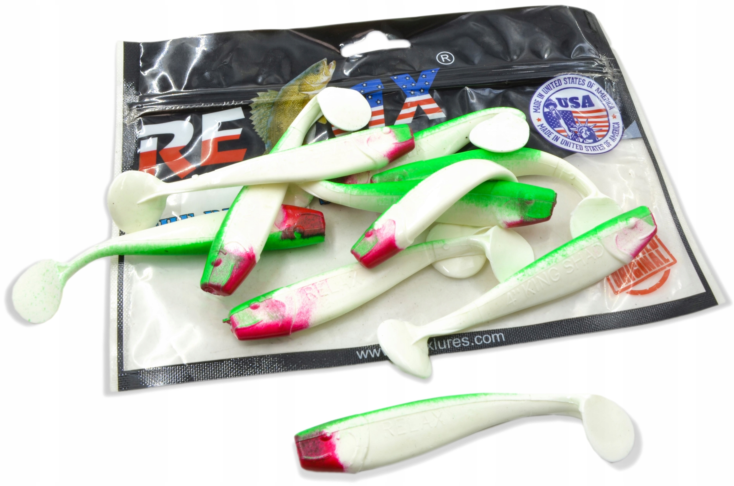 Przynęta sztuczna marki Relax. King Shad jest przynętą świetnie pracującą w opadzie, szeroko zakończony ogon powoduje świętną pracę przynęty. Polecamy na wszystkie drapieżniki, m.in szczupaki i sandacze.
